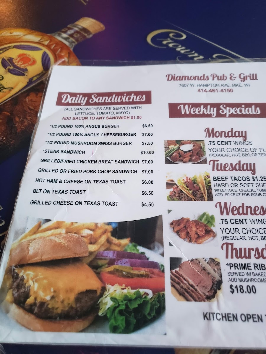 Diamonds Pub & Grille Menu